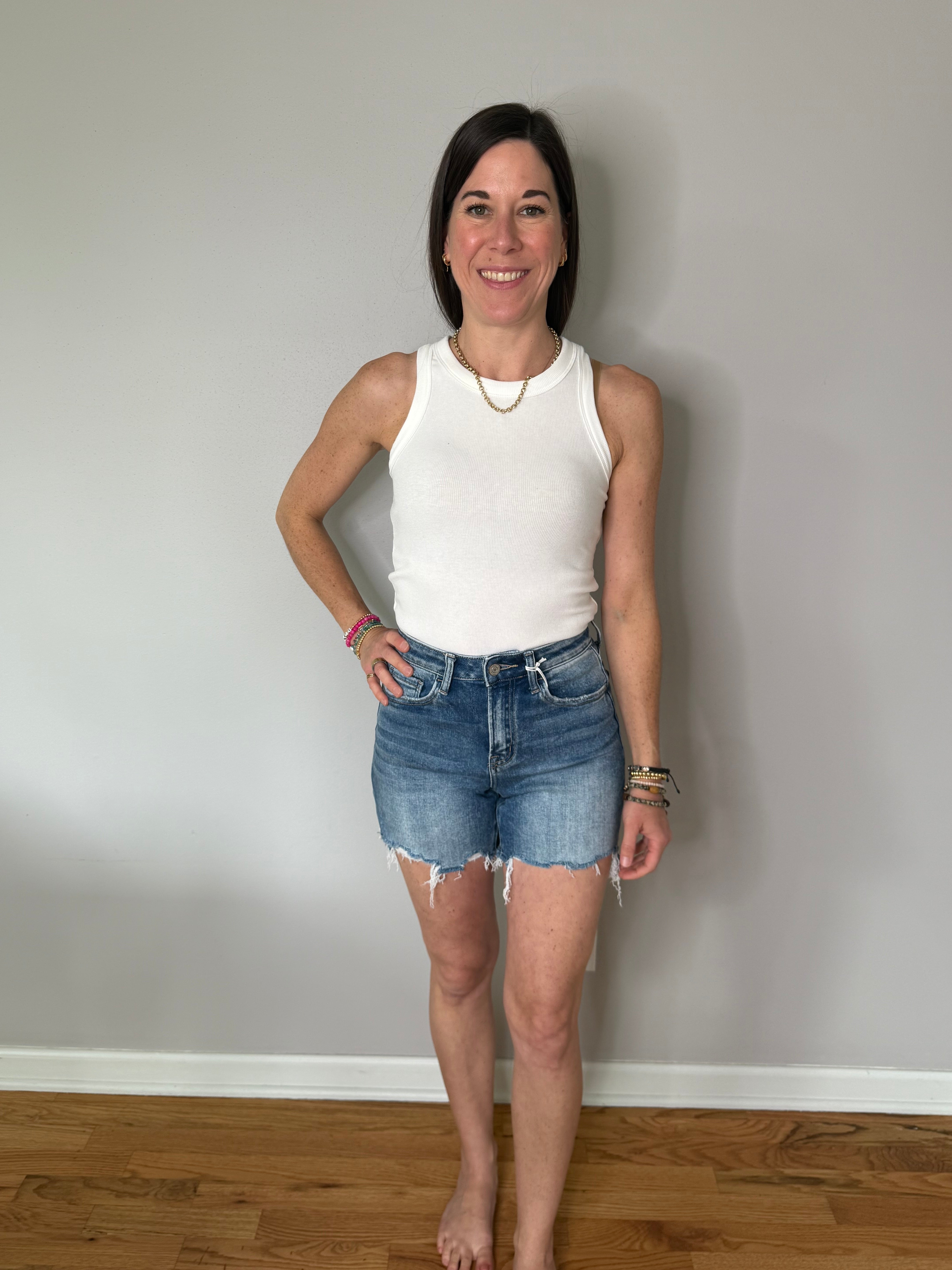 Vervet High Rise Raw Hem Boyfriend Shorts