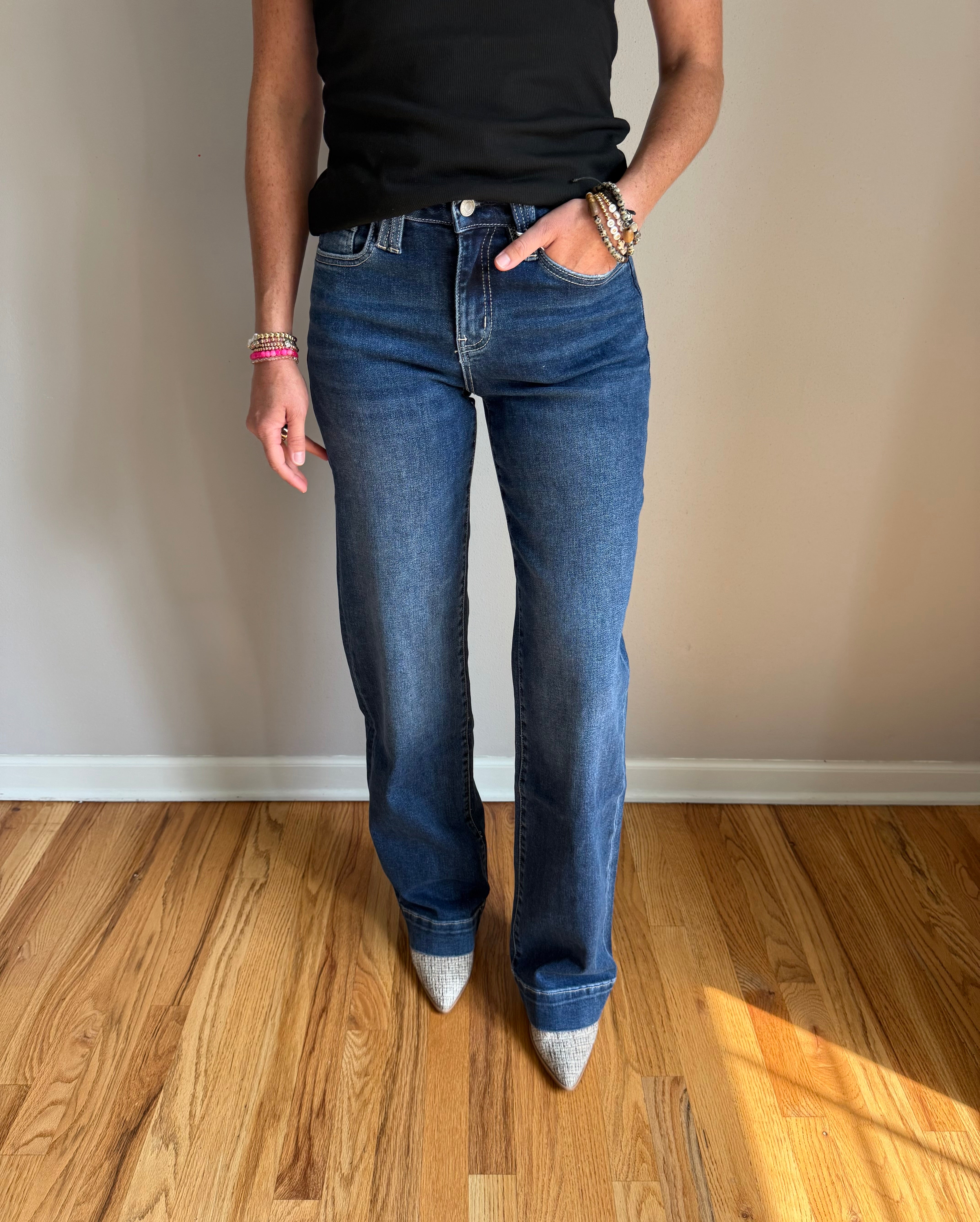 Size Guide: This style comes in sizes 24-32 and runs true to size. Mary is wearing a size 24 shown. (With heels on because inseam is long)