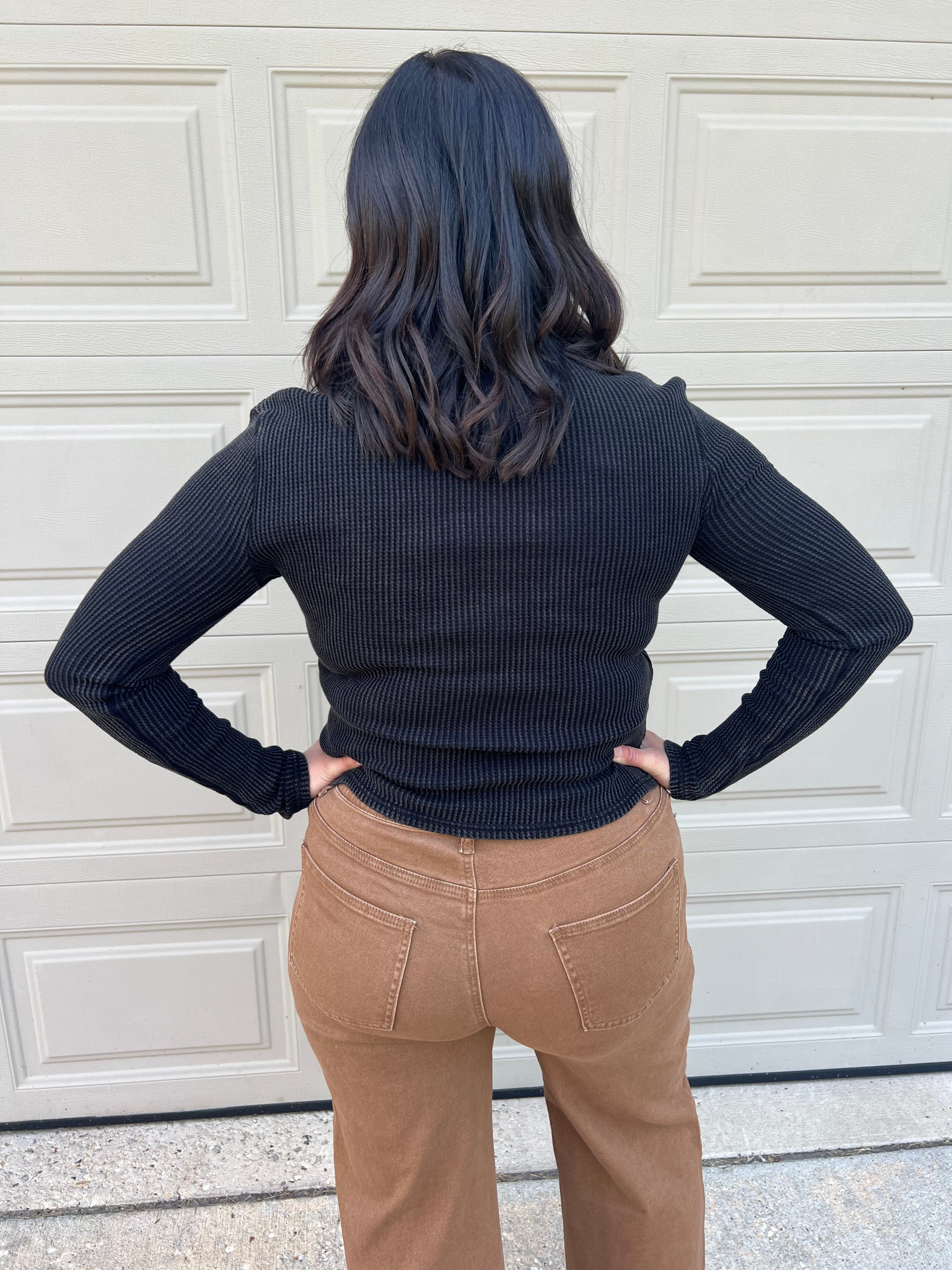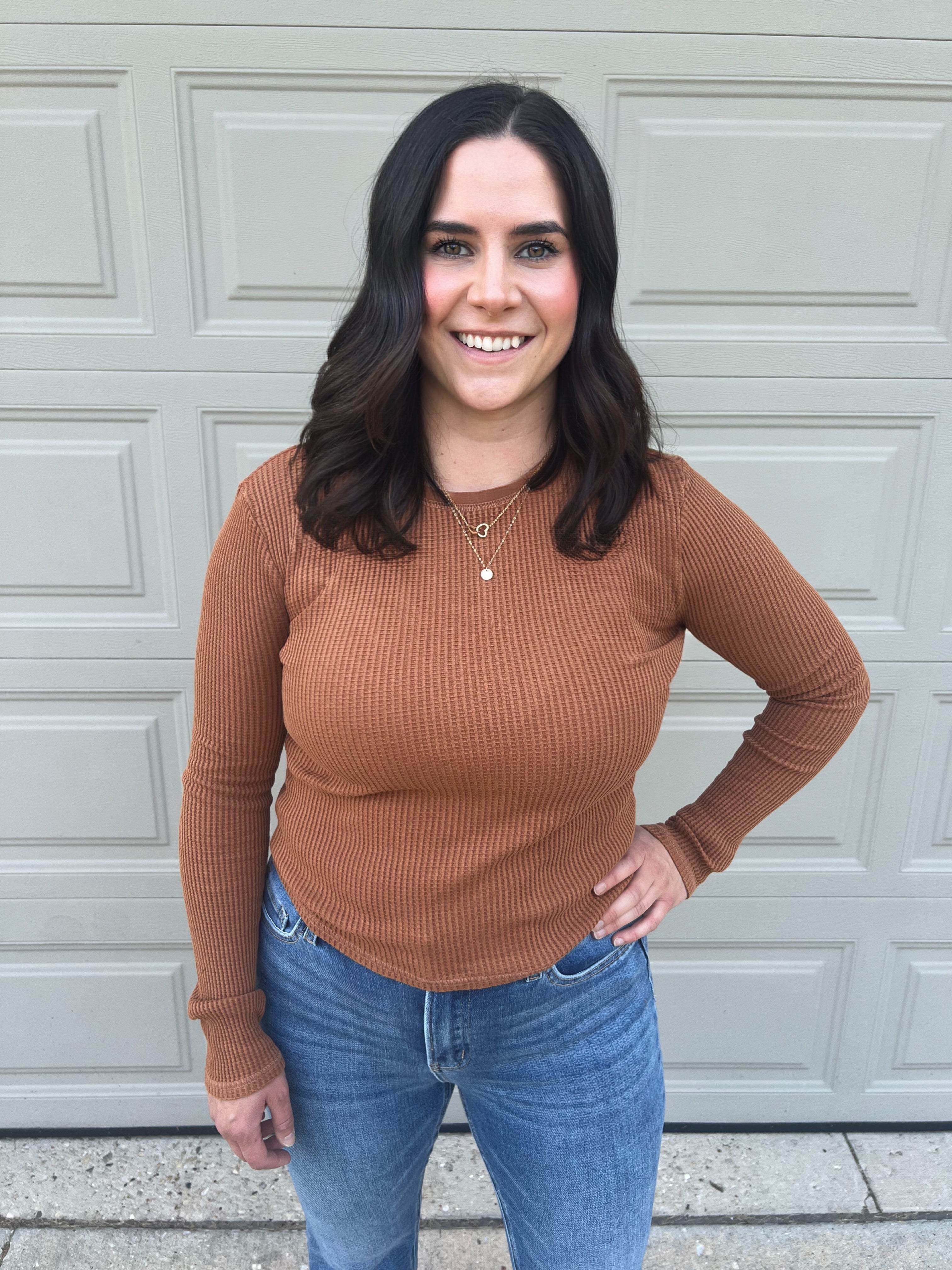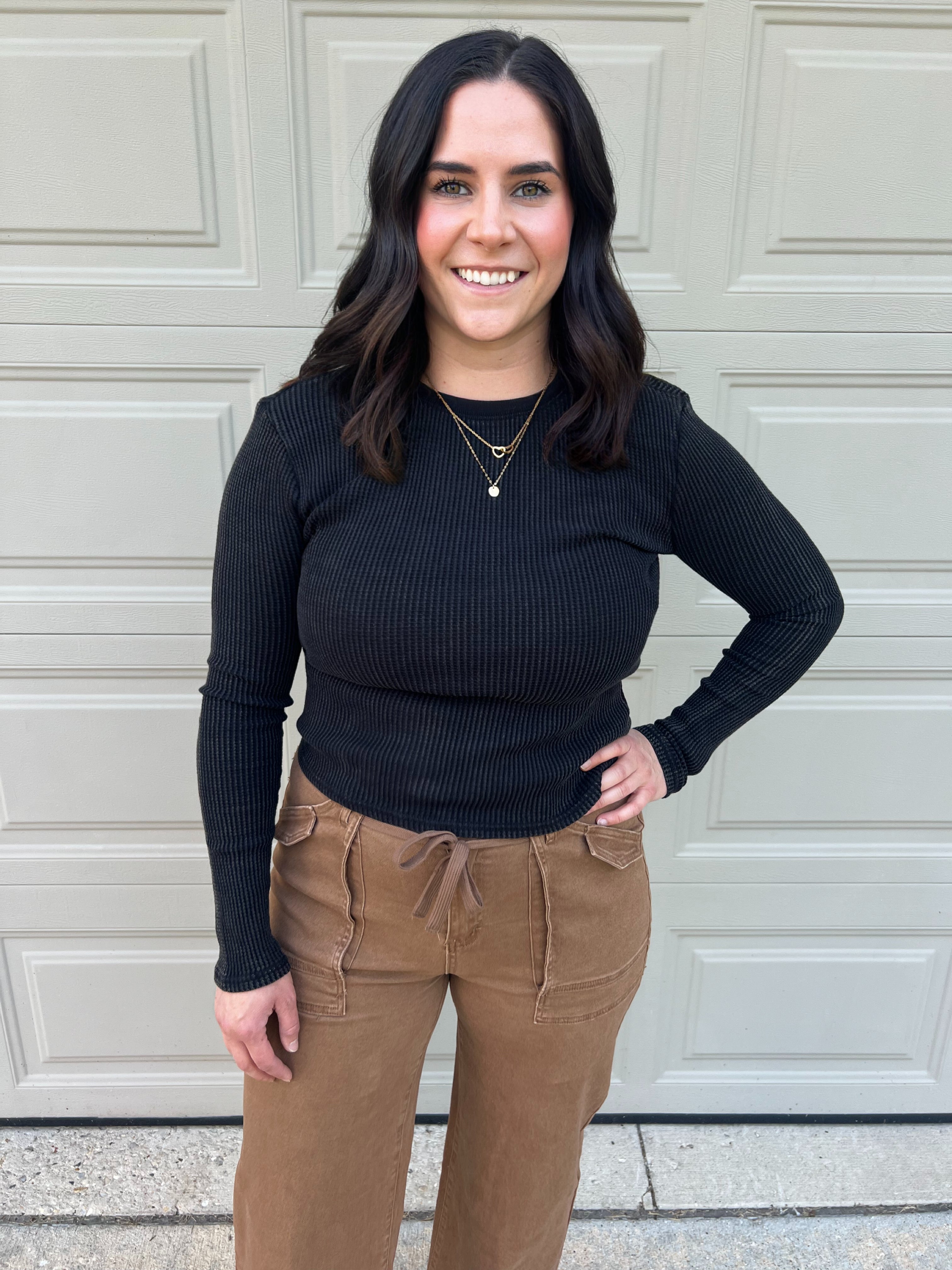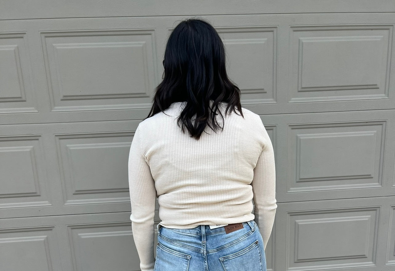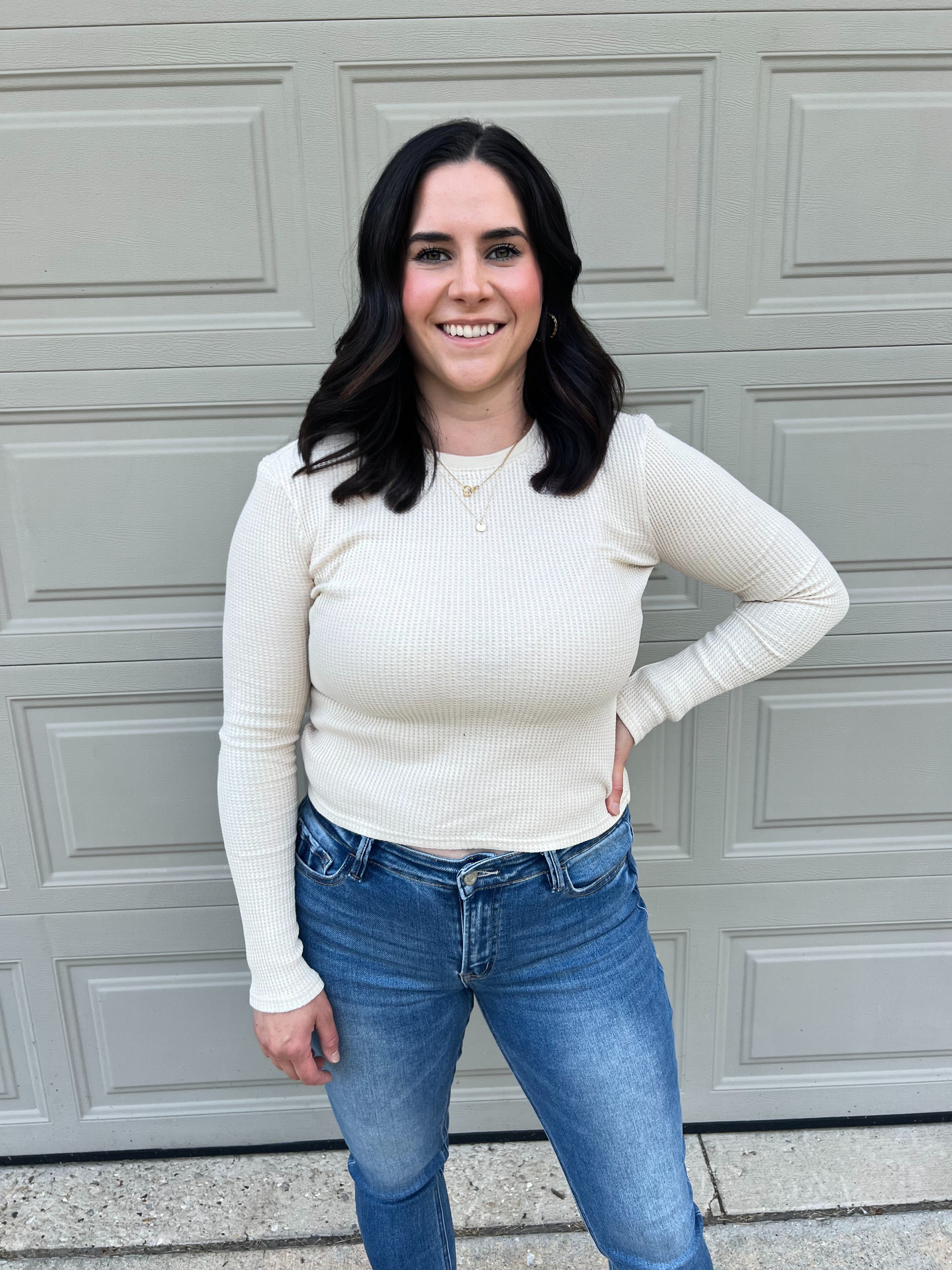 Upgrade your wardrobe with our Waffle Knit Long Sleeve Top. The classic crew neck and relaxed fit make it versatile for layering or wearing on its own. With its soft fabric, you'll experience all-day comfort. A must-have for any casual look.